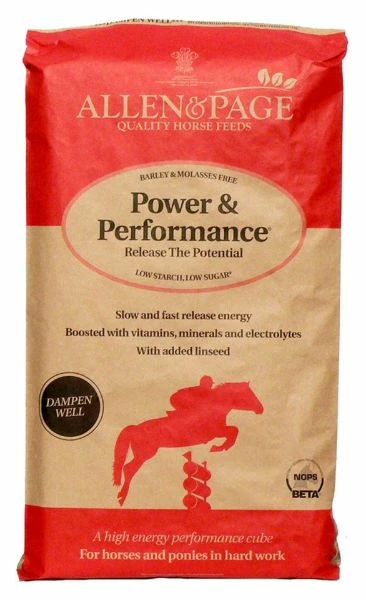 Release The Potential High energy performance feed – suitable for harder working horses and ponies Contains boosted levels of vitamins, minerals and electrolytes for performance Tested by professionals to the highest levels, including Pippa and William Funnell Contains a unique pre and probiotic blend Suitable for horses and ponies with intolerances to barley and molasses Dampen well – no need to soak! Power & Performance is our revolutionary, high energy competition feed, ideal for horses in harder work, particularly those who tend to be fizzy or sharp on traditional competition diets. High energy ingredients combined with lower starch levels, allow horses to work hard and achieve results whilst remaining focused.