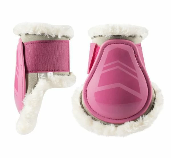 Shock-absorbing fetlock boots are lined with a faux fur for bonus comfort. Great for protecting the hind legs while jumping. Wide hook and fastener attachments keep them firmly in place. Combine with the other matching Caliber products for a complete set.
