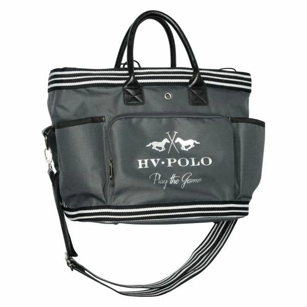 Grooming bag with silver logo print. On top you can close the grooming bag by a drawstring. With handles and a striped shoulder strap for easy carrying. Made out of material with PVC coating on the backside of the material for waterproofness.