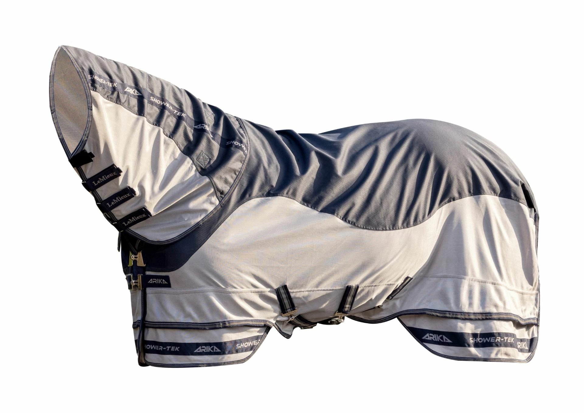 A two-part patented lower skirt system provides a break in the hemline and relieves tension allowing for a greater range of movement.