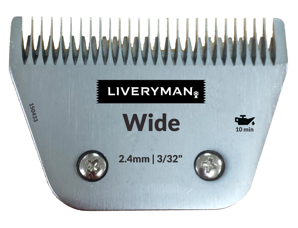 The Liveryman 10W Clipper Blade is a wide blade that leaves approximately 2.4 mm of hair and fits the Liveryman Harmony and Harmony Plus clippers.