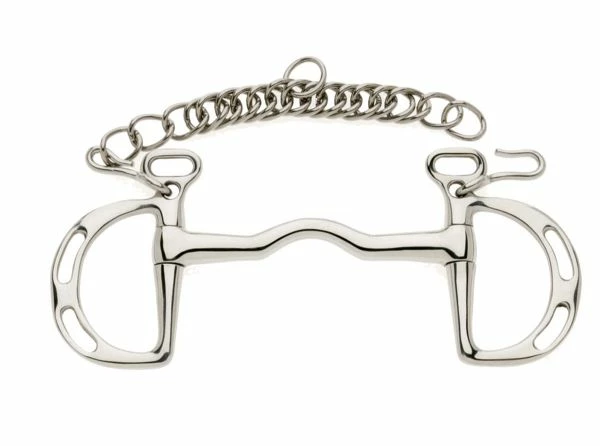 The Uttoxeter Kimblewick has a port mouth and slotted rings. The kimblewick action is similar to that of a hanging cheek with the added advantage of the curb chain. The port mouth mouthpiece of the Kimblewick helps to alleviate tongue pressure, whilst the slotted bit ring can be used to change the action of the curb chain and the amount of poll pressure applied.