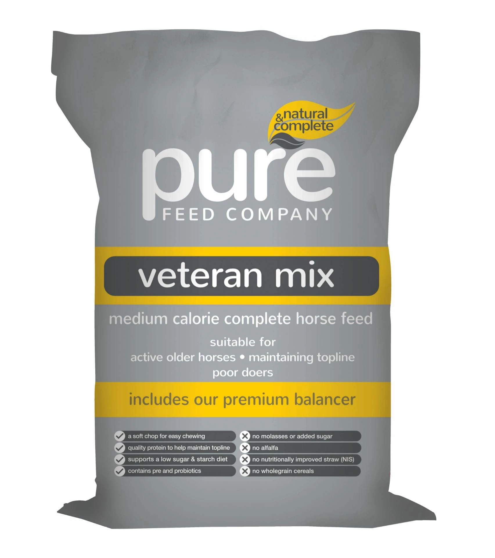 Pure Veteran Mix is formulated for senior horses that need extra help maintaining condition or are still in regular work.