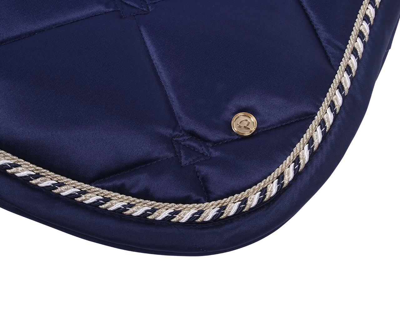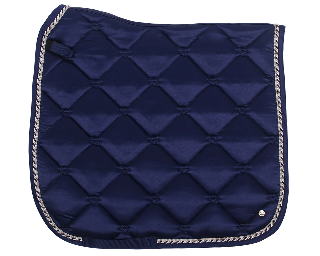 Elegant saddle pad with diamond quilting and two decorative cords for the extra chic touch. The saddle pad features girth loops and short d-ring loops which ensure that the saddle pad remains well in place. Satin finish with soft moisture wicking underside.