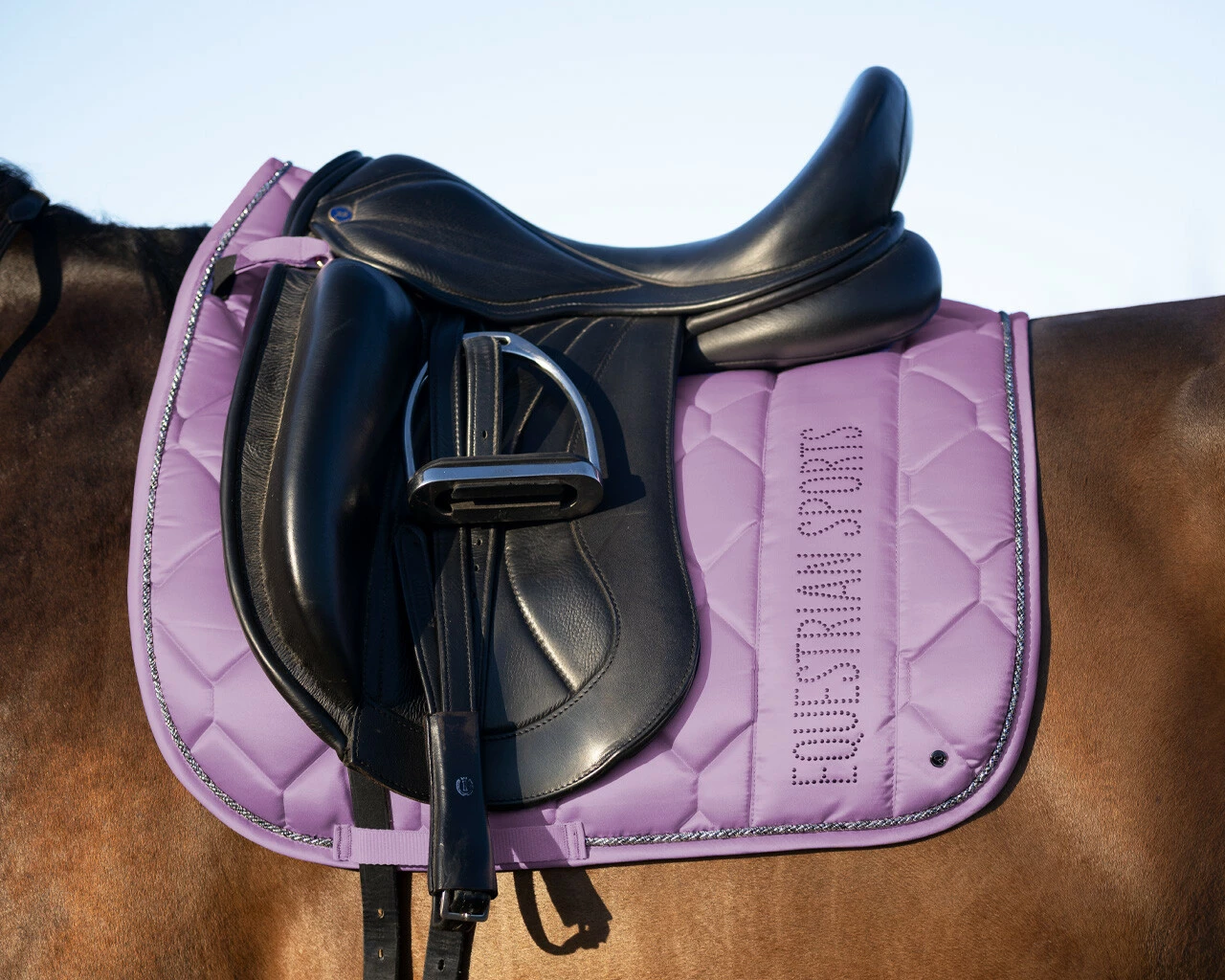 - With a glittering decorative cord and a glittering text print ‘Equestrian sports’