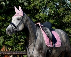 Elegant saddle pad with two decorative cords and a lace trim for an extra chic touch. The saddle pad is equipped with girth loops and short billet straps with Velcro to ensure that the saddle pad stays in place. The QHP badge on the left side completes the saddle pad.