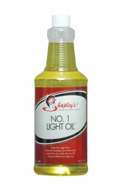 No. 1 Light Oil is a fine conditioning oil for the coat and skin. It adds a light shine to the coat as it smoothes and softens the hair. It adds a fine layer of oil to dry skin or coat to replenish and make skin and hair healthy again. It detangles manes and tails without leaving them sticky or gummy feeling and allows tough knots to slip out with ease.