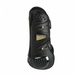 Further detail: smooth tough outer to deflect blows, recessed stitching, elasticated straps with adjustable pin fastening for a secure quick fit.
