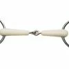 The French link in this bit means pressure is applied to both sides of the tongue. Some horses with low palates may find this bit more comfortable as the mouthpiece should not contact the palate when the bit is in action.