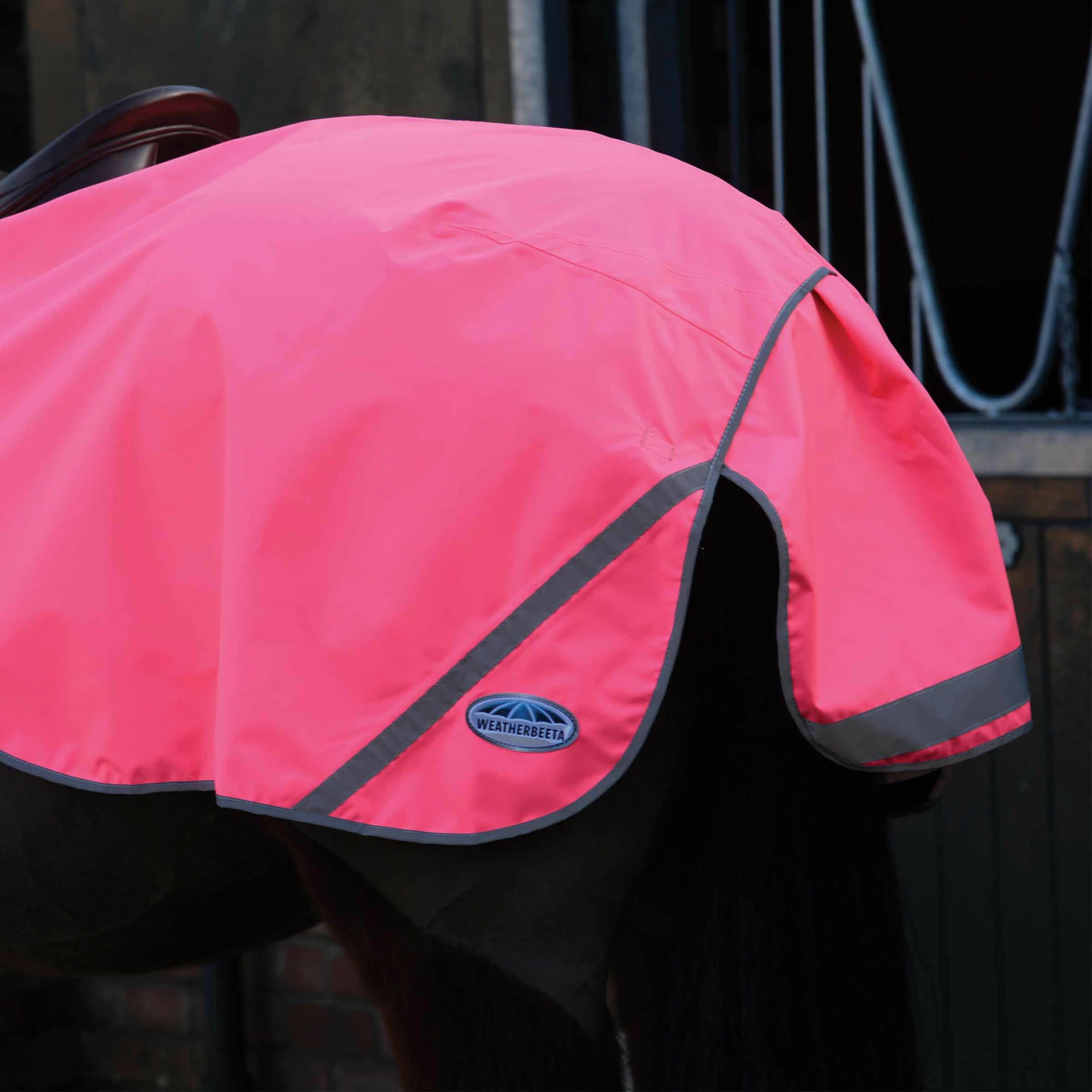 The WeatherBeeta 300D Reflective Exercise Sheet is a quality, waterproof and durable 300 denier outer, with a 210T polyester lining. Features are reflective binding, reflective detail, 100% boa fleece at the wither and large tail flap with reflective strip for extra safety, touch tape girth loops and tail cord.