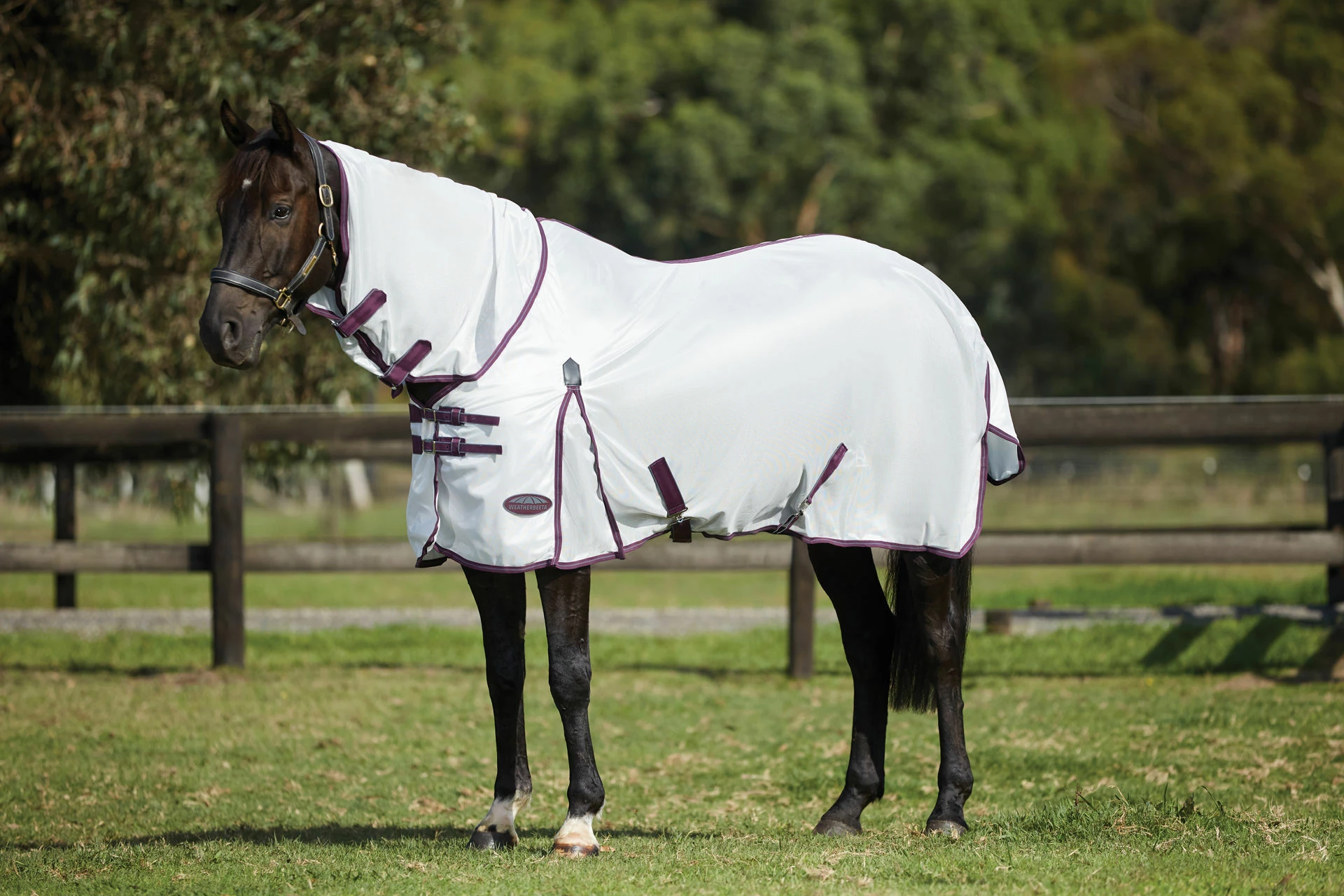 Classic style at a great price with a soft but durable mesh for protection. The WeatherBeeta ComFiTec Essential Mesh II Combo Neck offers 65%+ UV block with 210T nylon lining at the shoulders, mane and tail. It features twin adjustable buckle front closure with touch tape, traditional side gusset for natural movement, low cross surcingles, large tail flap and adjustable removable leg straps.