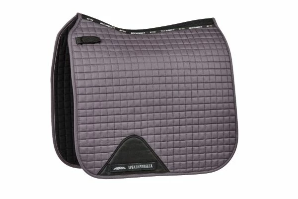 The WeatherBeeta Prime Dressage Saddle Pad is a durable cotton pad with a wick easy lining helping to keep your horse cool, dry and comfortable. The breathable mesh spine allows extra airflow to the horse’s back. The covered girth patch offers durability and the touch tape girth loops allow for a versatile fit. Easy attachment to the D-rings is made simple with short touch tape loops for a secure fit and the high wither design allows for extra space to assure maximum comfort for the horse. Machine washable at 30 degrees, DO NOT tumble dry. Matching range available.