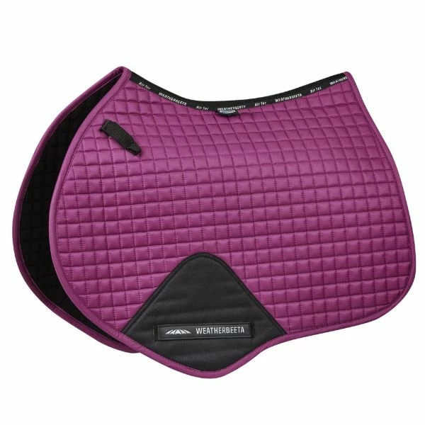 The WeatherBeeta Prime Jump Saddle Pad is a durable cotton pad with a wick easy lining helping to keep your horse cool, dry and comfortable. The breathable mesh spine allows extra airflow to the horse’s back, whilst the pad is designed to fit more forward cut jumping saddles with a high wither design to allow extra space where needed. The covered girth patch offers durability and the touch tape girth loops allow for a versatile fit. Easy attachment to the D-rings is made simple with short touch tape loops for a secure fit and the high wither design allows for extra space to assure maximum comfort for the horse. Machine washable at 30 degrees, DO NOT tumble dry. Matching range available.