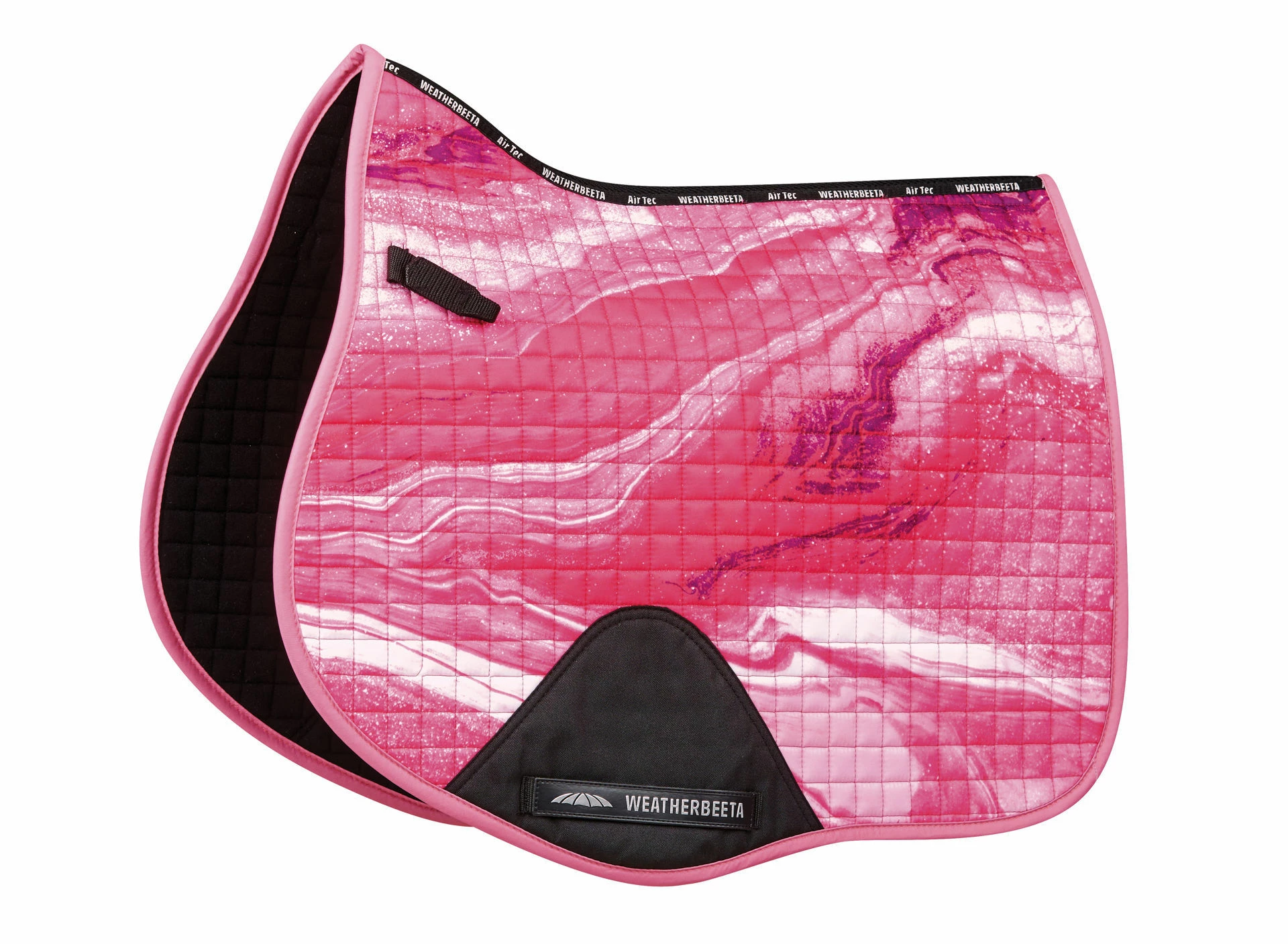 The WeatherBeeta Prime saddle pads offer high quality design and technology for your horses comfort. The WeatherBeeta Prime Marble All Purpose Saddle Pad is a durable cotton pad with a wick easy lining helping to keep your horse cool, dry and comfortable. The breathable mesh spine allows extra airflow to the horse’s back. The covered girth patch offers durability and the touch tape girth loops allow for a versatile fit. Easy attachment to the D-rings is made simple with short touch tape loops for a secure fit and the high wither design allows for extra space to assure maximum comfort for the horse. Gentle machine or hand wash at a low temperature, air dry, do not tumble dry. Matching range available.