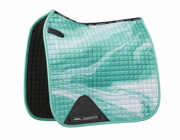 The WeatherBeeta Prime saddle pads offer high quality design and technology for your horses comfort. The WeatherBeeta Prime Marble Dressage Saddle Pad is a durable cotton pad with a wick easy lining helping to keep your horse cool, dry and comfortable. The breathable mesh spine allows extra airflow to the horse’s back. The covered girth patch offers durability and the touch tape girth loops allow for a versatile fit. Longer shape to sit perfectly with a dressage saddle. Easy attachment to the D-rings is made simple with short touch tape loops for a secure fit and the high wither design allows for extra space to assure maximum comfort for the horse. Gentle machine or hand wash at a low temperature, air dry, do not tumble dry Matching range available.