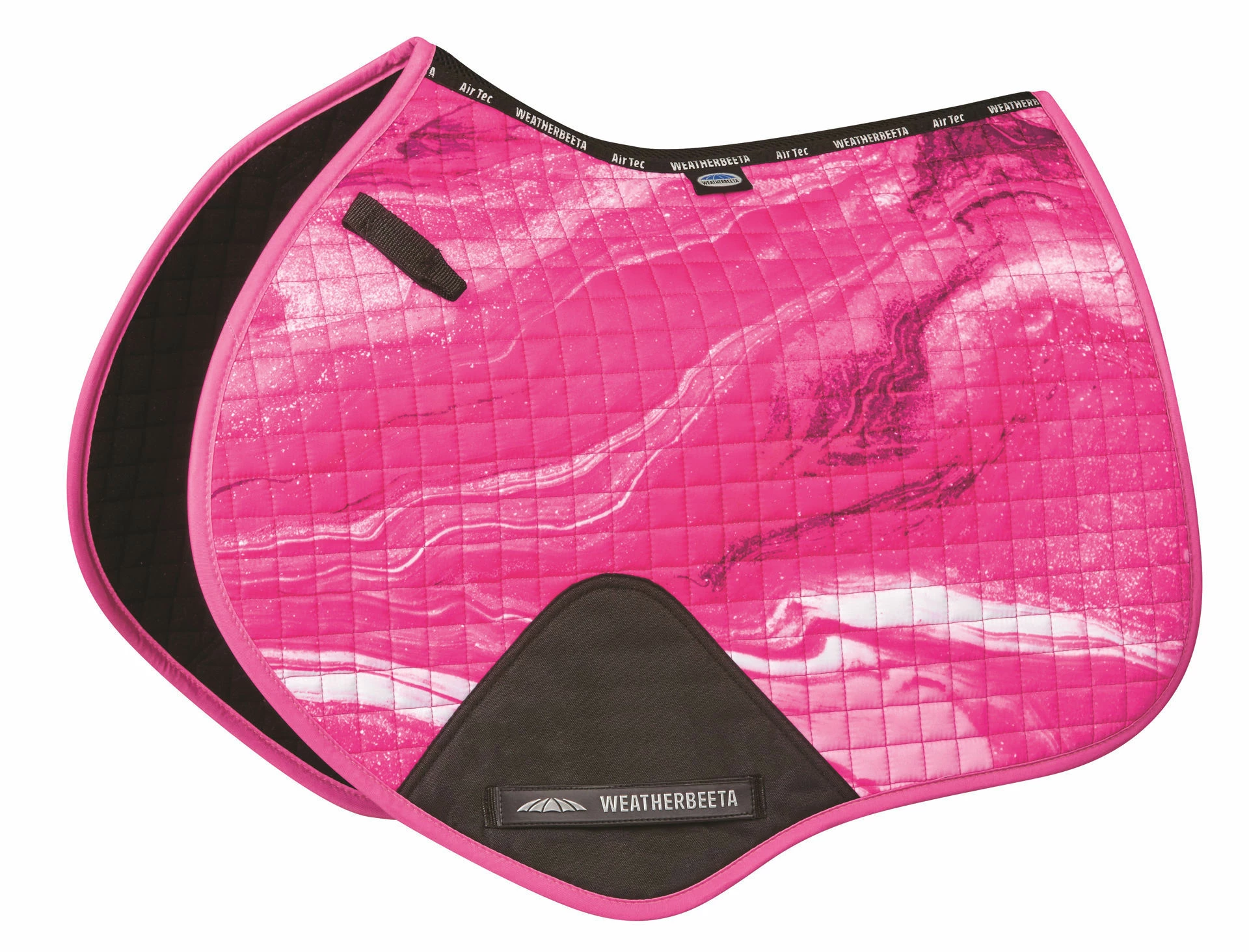 The WeatherBeeta Prime saddle pads offer high quality design and technology for your horses comfort. The WeatherBeeta Prime Marble Jump Saddle Pad is a durable cotton pad with a wick easy lining helping to keep your horse cool, dry and comfortable. The breathable mesh spine allows extra airflow to the horse’s back. The covered girth patch offers durability and the touch tape girth loops allow for a versatile fit. Designed to fit more forward cut jumping saddles. Easy attachment to the D-rings is made simple with short touch tape loops for a secure fit and the high wither design allows for extra space to assure maximum comfort for the horse. Machine washable at 30 degrees, DO NOT tumble dry. Matching range available. Gentle machine or hand wash at a low temperature, air dry, do not tumble dry Matching range available.
