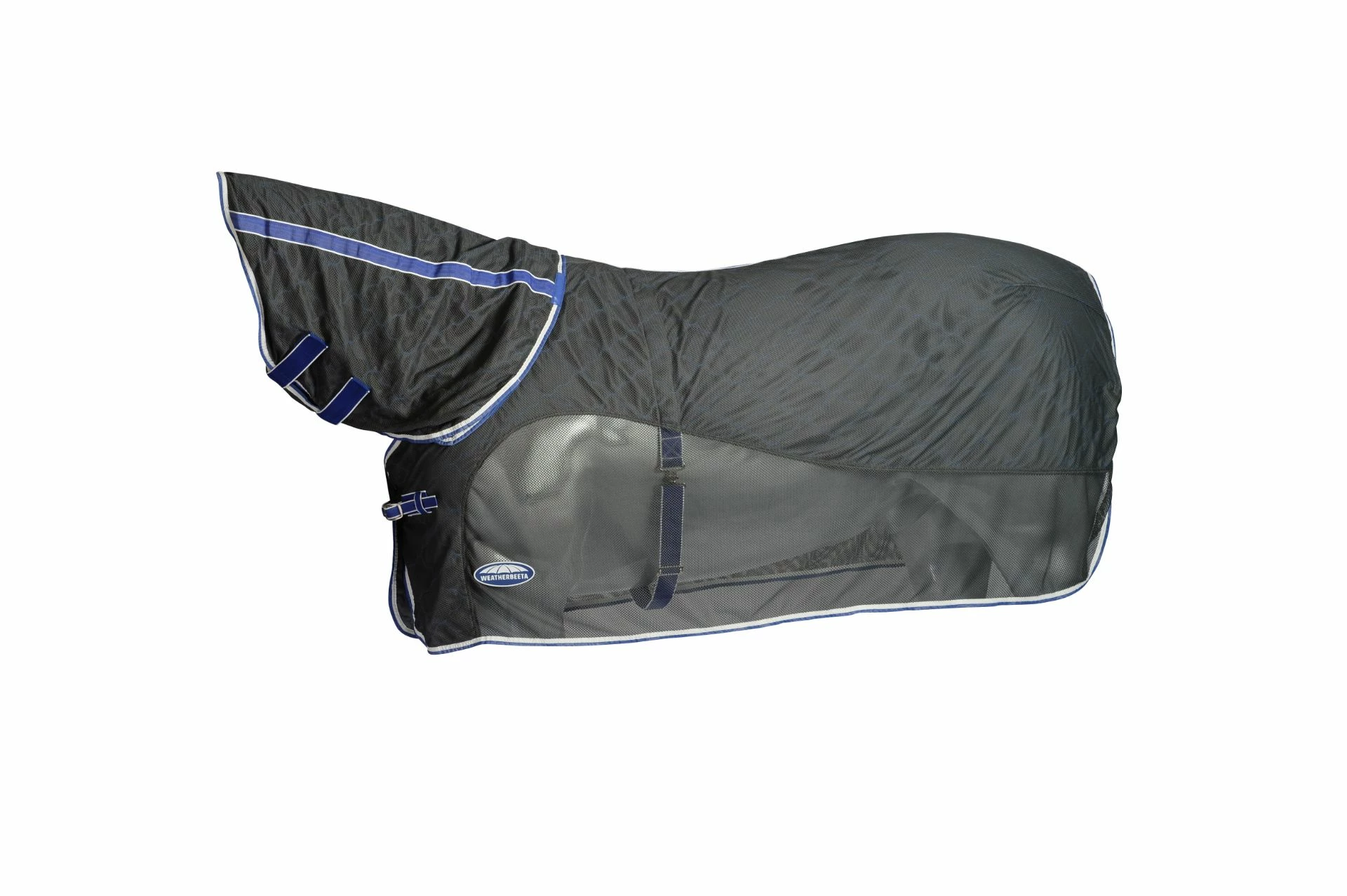 The WeatherBeeta Wick Dri II Cooler Combo neck is a lightweight breathable and higly wickable cooler with mesh covered Cooldry fleece upper to offer additional protection to the major muscle groups and a mesh lower for airflow. A combo neck style with hideaway neck pocket featuring touch tape closure to easily fold the neck portion away to use as a standard neck style. Boa fleece wither relief panel at the wither for additional comfort. Single adjustable buckle front closure, single hidden adjustable surcingle and tail cord.